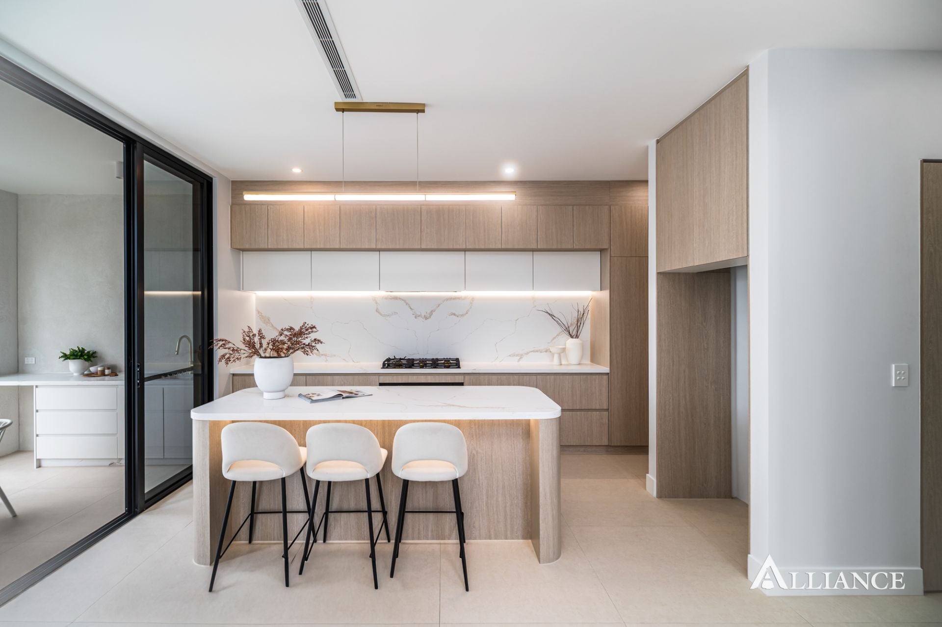 - Designer kitchen showcasing a butler's pantry, premium appliances and a stunning statement island bench
