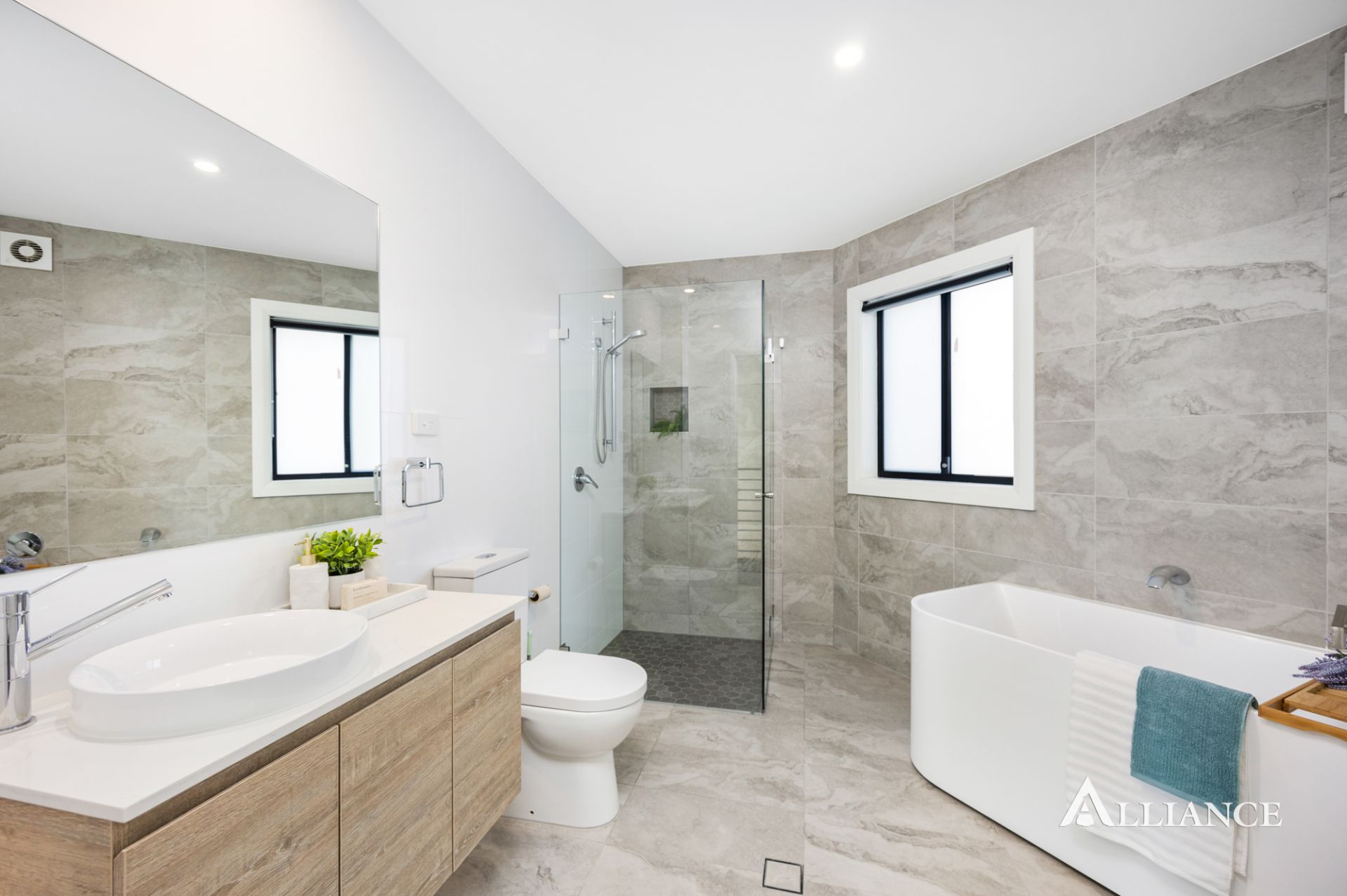 - Modern main bathroom with separate bath and shower
