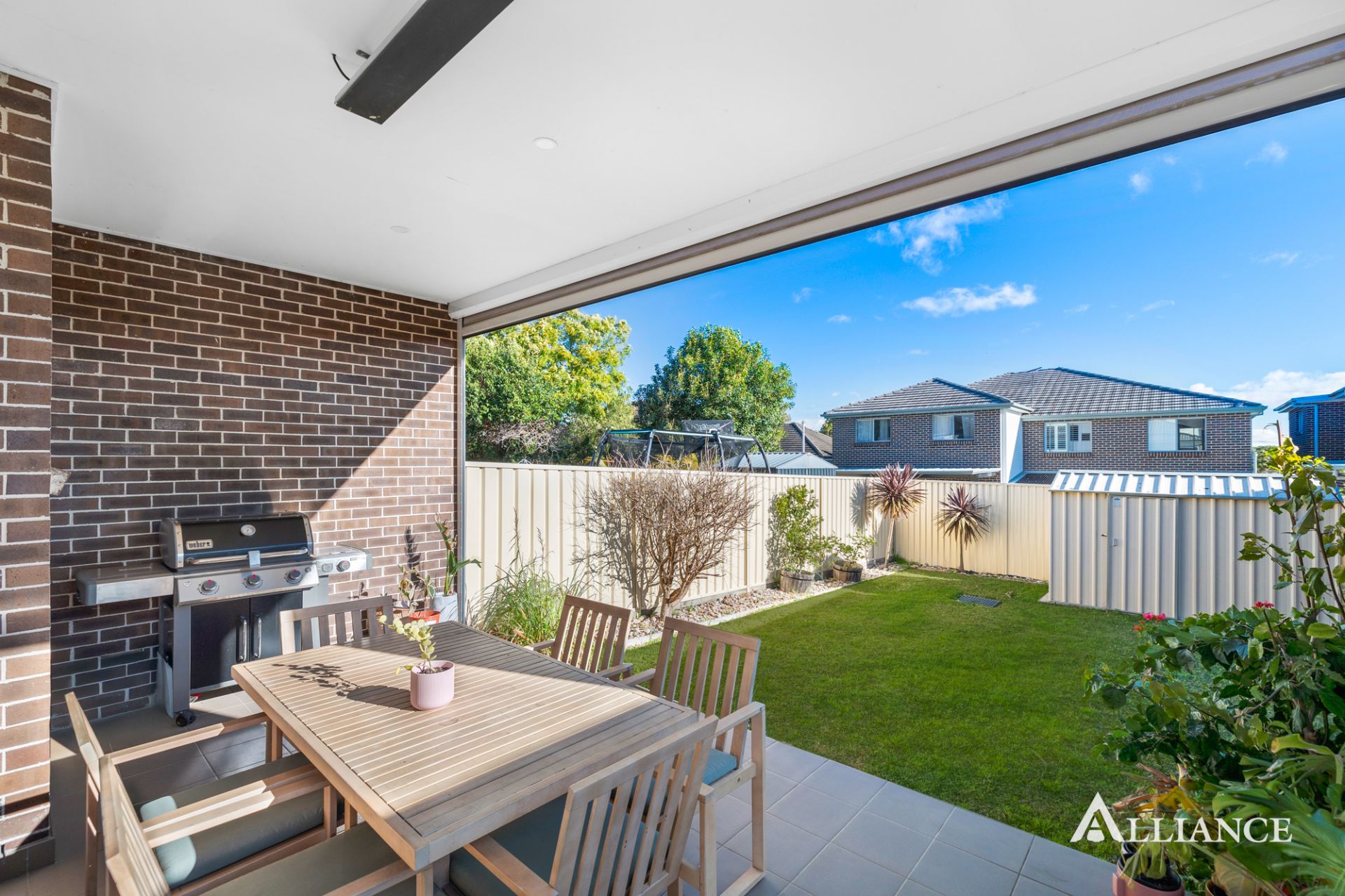- Spacious undercover alfresco area featuring outdoor heater, powered outdoor blinds, overlooking a secure and child-friendly backyard